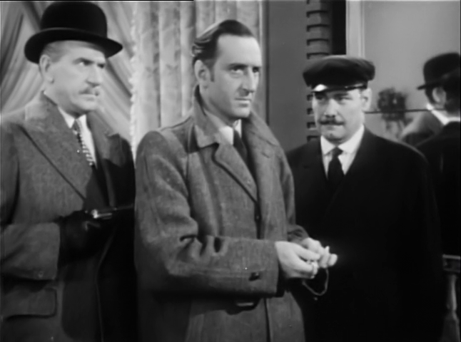 Plain of make and tinkling prettily, three musical boxes manufactured at HM Prison Dartmoor are at an auction inexpensively obtained by as many bidders. One among them (Breon) is a longstanding friend of Dr. John Watson (Bruce), who introduces the bewigged collector to his companion and biographee Sherlock Holmes (Rathbone). Soon after this initial acquaintance, the acquirer is murdered and his seemingly unremarkable falderal is filched, and only the master detective and bumbling, burbling physician can ascertain how this crime relates to banknote plates stolen from the Bank of England. Rathbone and Bruce are in commonly fine form in their last of fourteen outings as Doyle's duo, which boasts some excitement and a puzzler that taxes the venerable deductive faculties of the London sleuth in opposition to three ruthless and wily criminals (Morison, Worlock, Cording). Neither the best nor worst of its series, it's a satisfying coda, and the penultimate picture of Irish journeyman Neill, who perished shortly thereafter in '46.