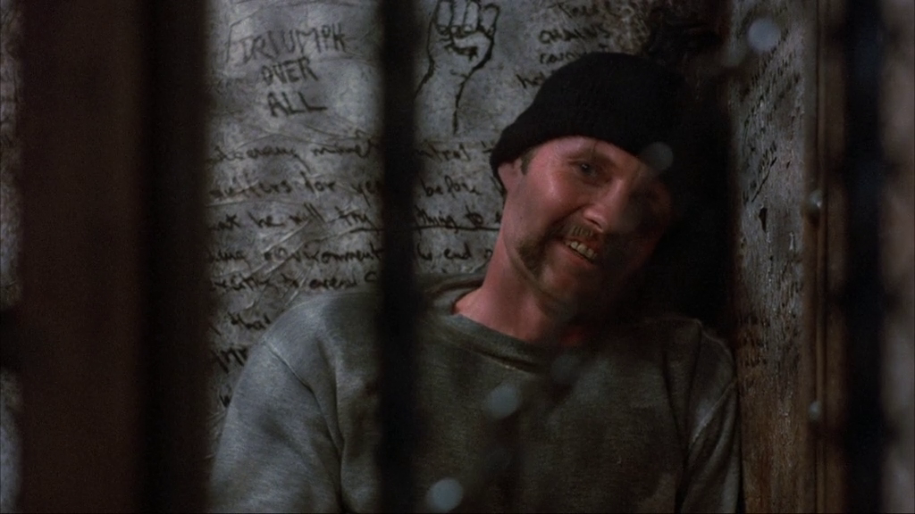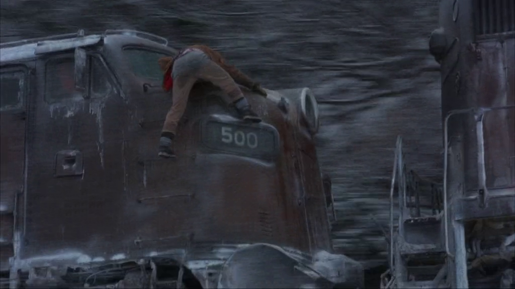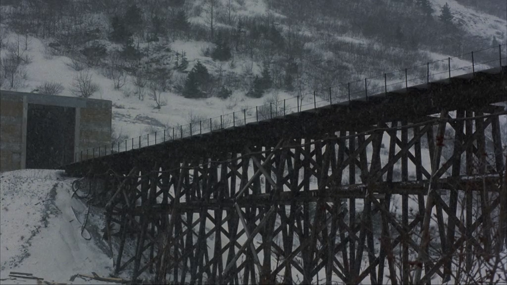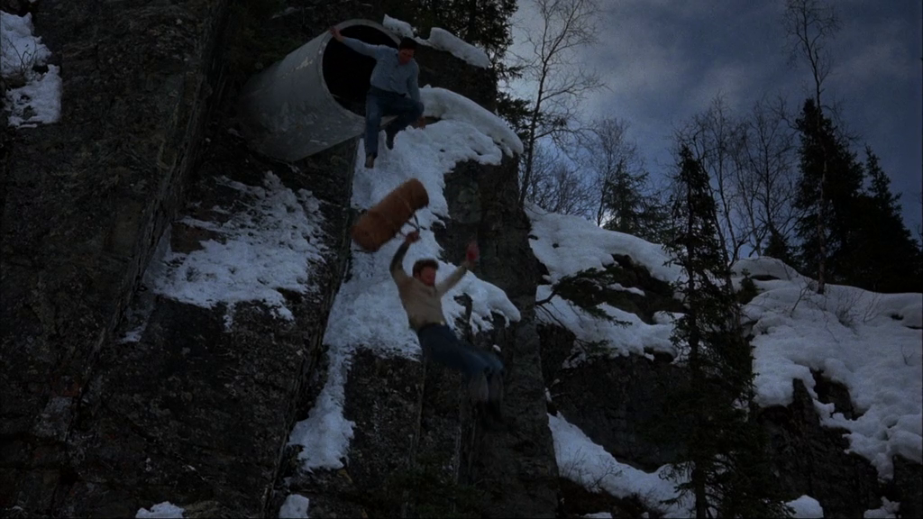 Their grimy, then gelid escape from a maximum-security penitentiary through its sewers, then the wintry landscape beyond isn't a tenth as harrowing as the adventure to which a famed bank robber and serial escapist (Voight) and his dopey, ebullient fellow felon (Roberts) are destined when they board a freight train that's unmanned after its engineer drops dead, and unrestrained in velocity after its brake shoes burn away and it collides with another train's caboose. Their career by tracks might be meliorated by ministration of an onboard assistant hostler (De Mornay), and the railway's local supervisor (McMillan) and dispatchers (Heffner, Carter), but the sadistic, magisterial, grandstanding warden (Ryan) of their recent prison pursues his sometime inmates by helicopter without intention to take them alive. It isn't the masterwork that it might've been had Akira Kurosawa delivered his and Hideo Oguni's story to the screen instead of the ill-fated Dodes'ka-den, but Russian emigre Andrei Konchalovsky's clamant, campy, powerful handling of his tale is nonetheless as exciting and affecting as actioners come, charged with the masculine energies of its seethingly aggressive, eventually reflective leading men and top-flight practical effects that leave little to one's imagination. With that boundless vim aforeseen in The Pope of Greenwich Village, Roberts plays his daft yet devoted partner to irately expressive Voight well over the top, and both are great at both their hammily wild and pensively sedate extremes. Those calms between his histrionic storms are where Konchalovsky unveils his characters' inner vulnerabilities and strengths, and even when his movie veers melodramatically, its appealing balance of drama and violence is as riveting and honest as any in its genre. Its otherwise excellent production values are marred slightly by a few corners typically cut in flicks by Golan-Globus: exterior shots of the pen are plainly matte paintings, and bad dubbing (especially during the first twenty minutes) undercuts some of the acting. However, Konchalovsky finely frames most of his shots to maximize their explicit grit and realism; that latter lineament's furthered by the presence of genuine ex-convicts Danny Trejo (in his first role, battered by welterweight Roberts in their prison's boxing ring) and co-screenwriter Eddie Bunker as an overloyal comrade to Voight's esteemed lifer, as well as towering wrestler "Tiny" Lister in the part of a friendly prison guard. Never mind what could've been; through Konchalovsky's eyes, The Emperor's vision has more heart and white-knuckle might than that virtuoso might've clothed -- though its transcendently sacrificial conclusion is as ethnomatically Japanese as one could expect.
